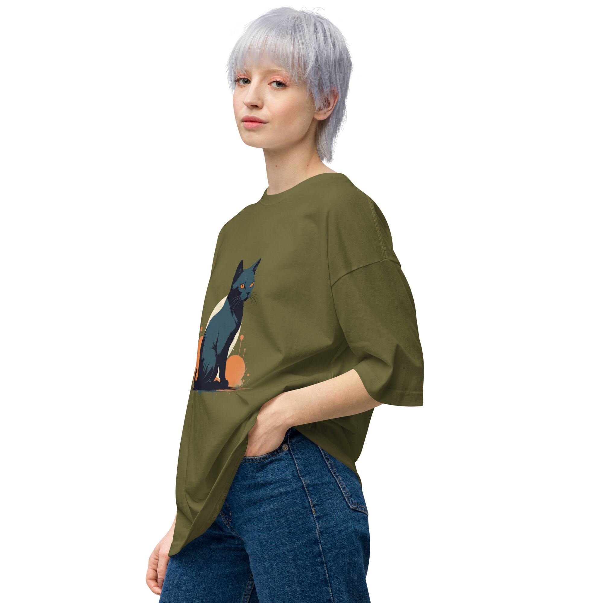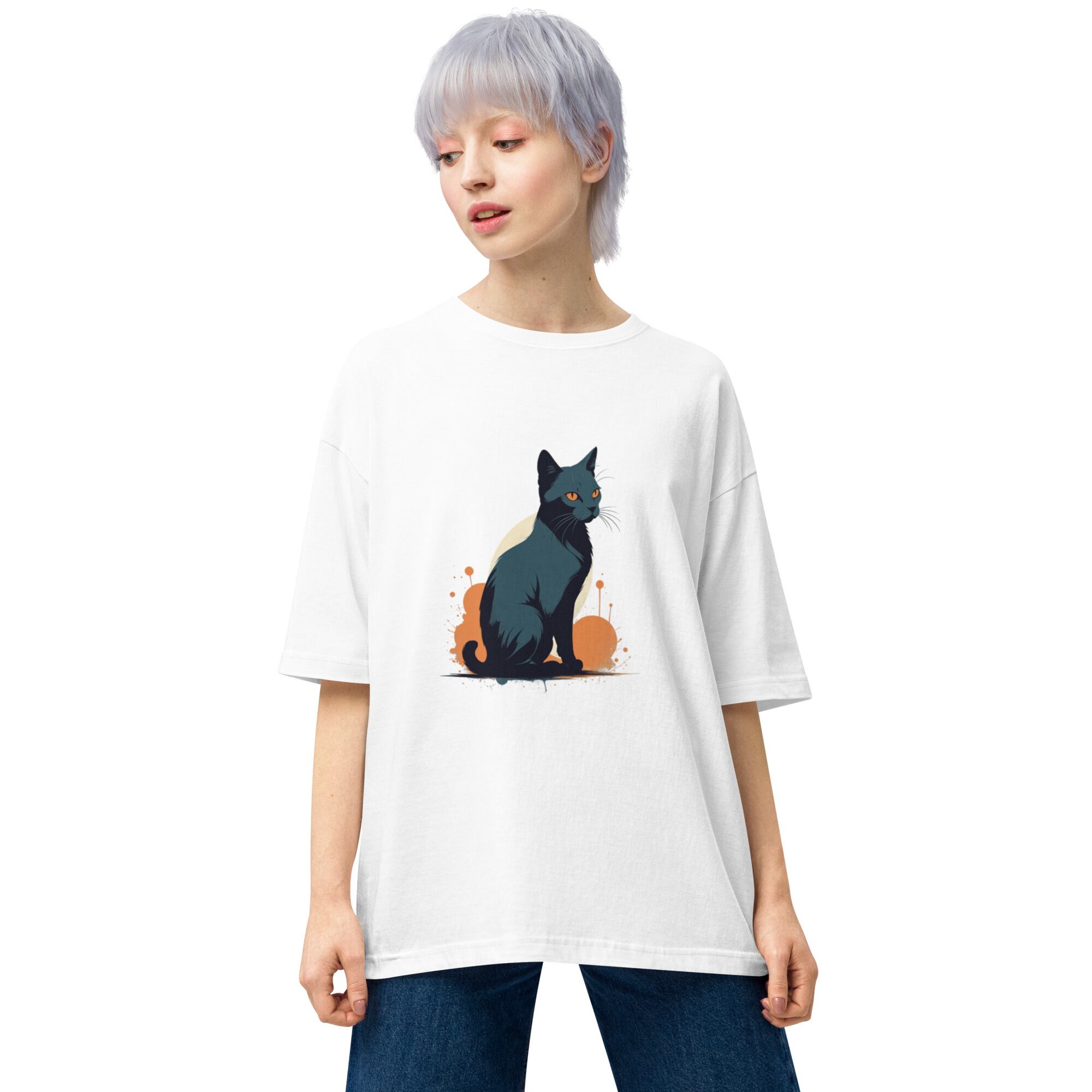 LENLEN/黒猫ビッグシルエットTシャツ